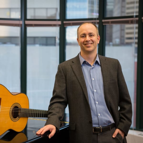 Since 2000, Trevor Sanders has been an active teacher, adjudicator, and performer in the Edmonton area and throughout Alberta. He began teaching, and is currently on faculty at, MacEwan University’s Alberta College Conservatory of Music since 2001, the Augustana Campus of the University of Alberta since 2008, and at Concordia University of Edmonton since 2023. He is a graduate of the University of Alberta (MMus) and Augustana University College (BA specialized in Music). As an active performer, his appearances as a chamber musician and as a soloist have been heard in numerous concert series and on radio. Trevor has been involved with a number of guitar ensembles and is a founding member of the University of Alberta Guitar Quartet and the Edmonton Guitar Trio. He has also performed as a soloist with the Alberta Baroque Orchestra. Trevor currently teaches music theory and guitar for the Conservatory at the Winspear Centre; music theory, jazz guitar, and classical guitar for the University of Alberta at its Augustana Campus; classical guitar for Concordia University of Edmonton; and guitar (classical, jazz, contemporary) for the Purple Door Music Academy.